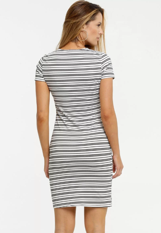 Vestido Feminino Listrado Manga Curta Marisa